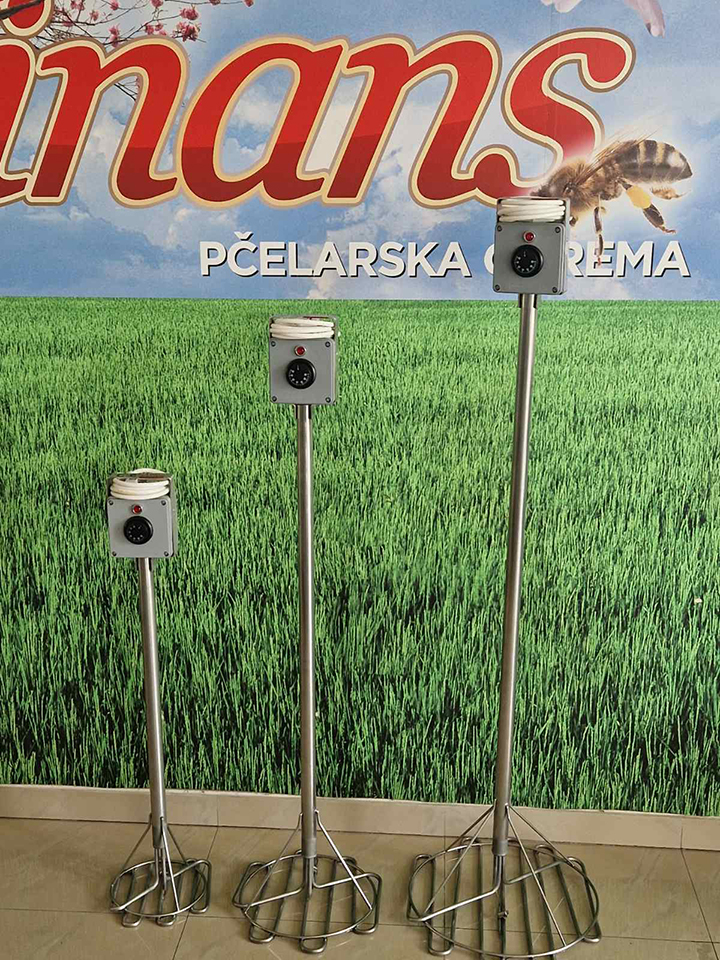 Štapni dekristalizator meda sa grejačem prečnika Ø250 mm i snagom 400 W namenjen je za efikasnu dekristalizaciju kristalisanog meda u kantama i buradima. Izrađen je od visokokvalitetnog nerđajućeg čelika AISI 304, što garantuje otpornost na koroziju i dug vek trajanja. Opremljen je termostataom koji omogućava jednostavno i precizno podešavanje temperature, čime se postiže optimalan proces dekristalizacije meda.